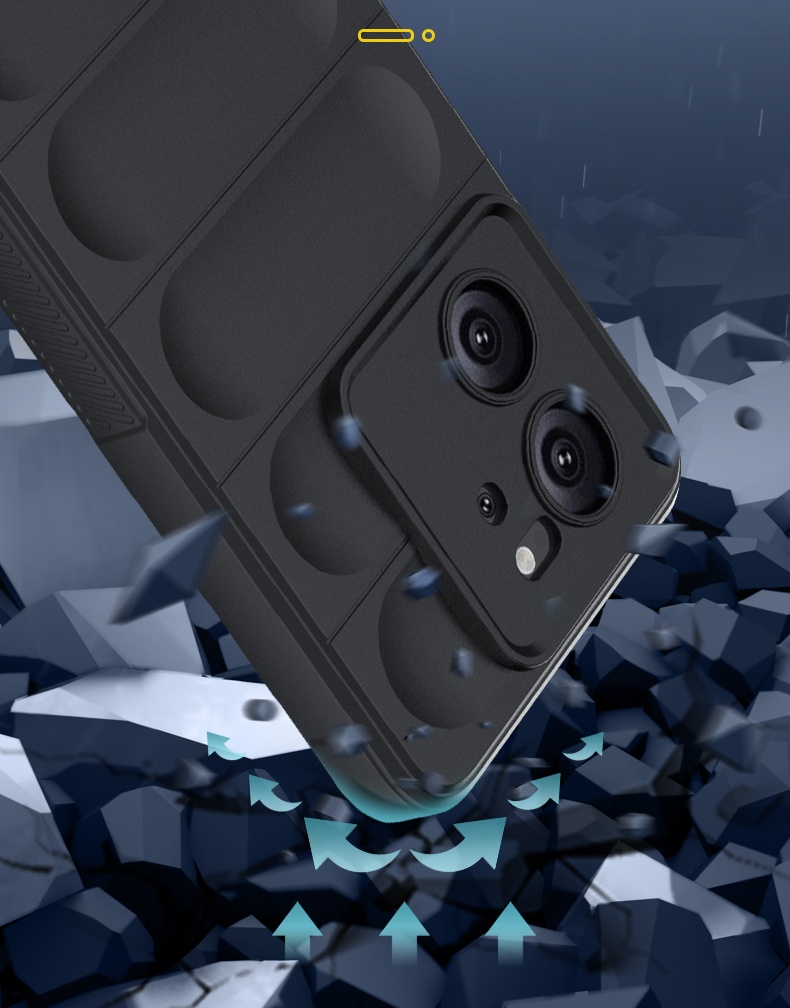 Ima nedrseče robove s površino, ki spominja na avtomobilsko gumo. Telefon vam ne bo zdrsnil iz roke.