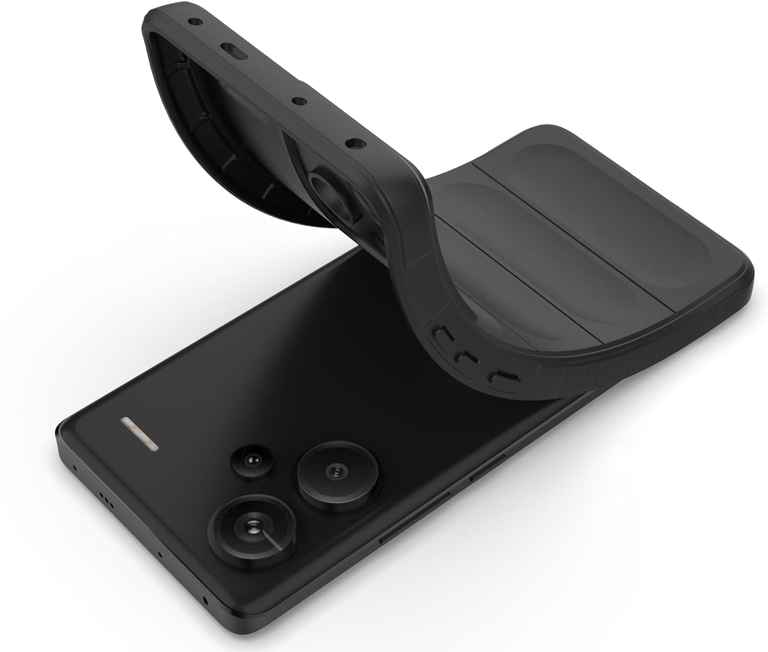 Ima nedrseče robove s površino, ki spominja na avtomobilsko gumo. Telefon vam ne bo zdrsnil iz roke.