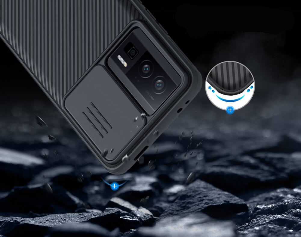 Originalniovitek Nillkin iz CamShield je izdelan iz visokokakovostnega polikarbonata, ki je dodatno ojačan na vogalih, zahvaljujoč čemur absorbira energijo udarca v primeru padca.