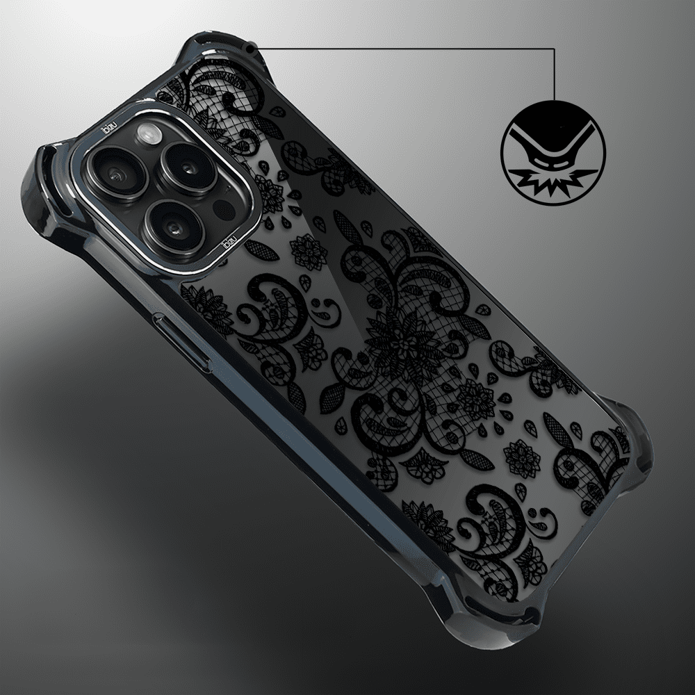 shumee Ovitek za iPhone 14 Pro IBIZU DropGuard Ultra z MagSafe, polnočno črn, čipkasto črn