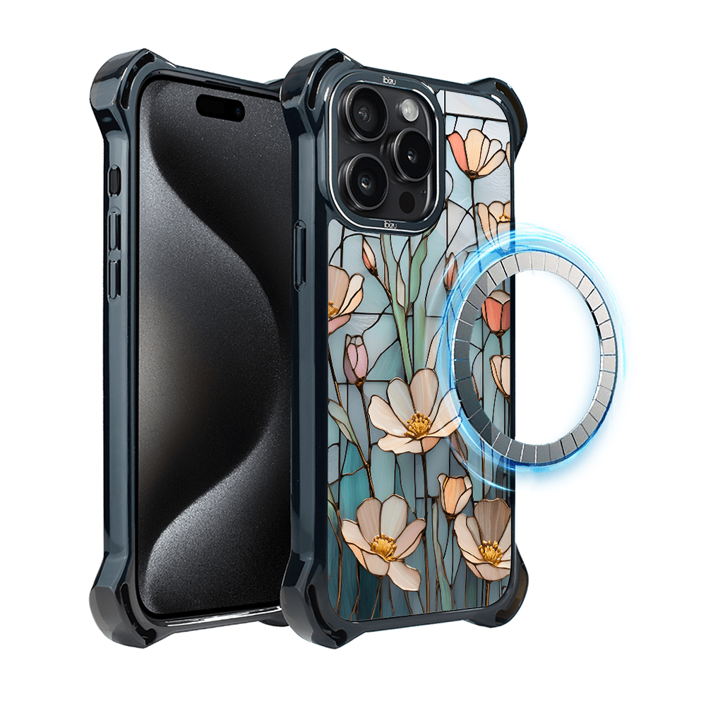 shumee Ovitek za iPhone 15 Pro Max IBIZU DropGuard Ultra z MagSafe, barve stekla, Wildflower Whisper