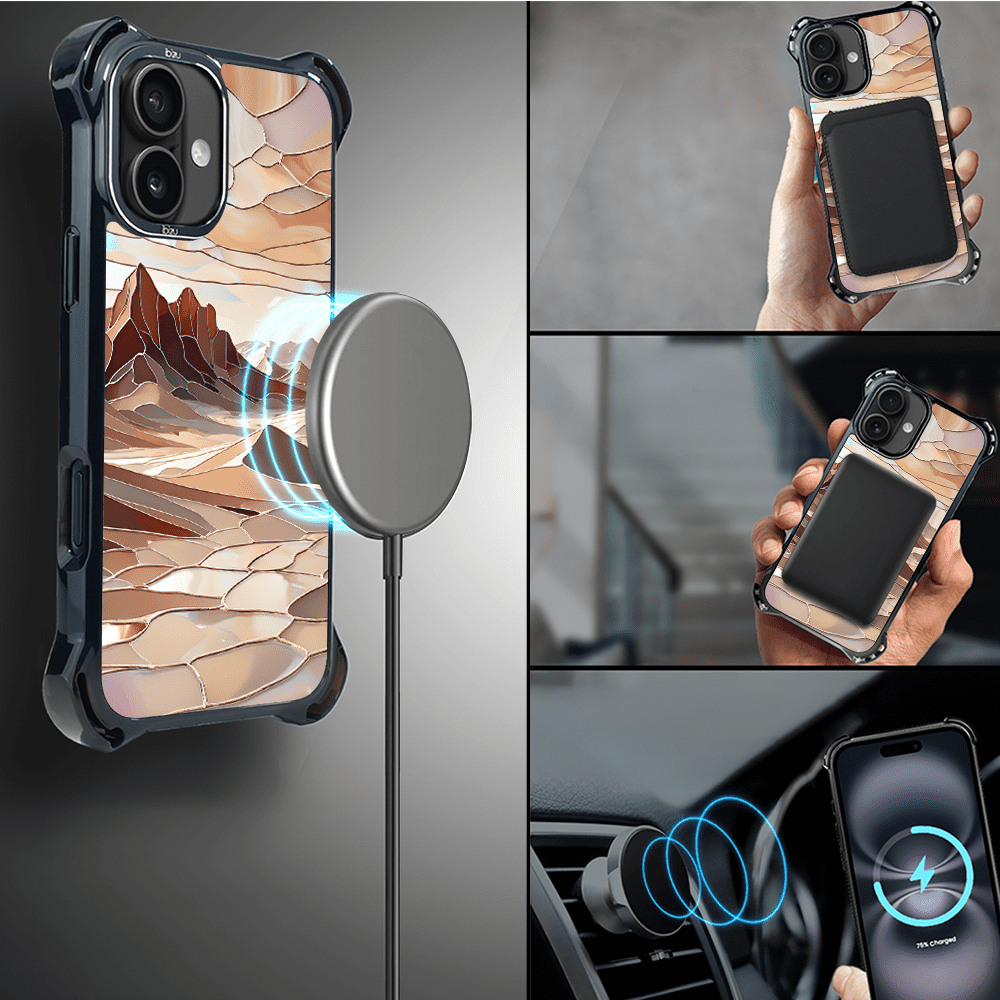 shumee Ovitek za iPhone 16 IBIZU DropGuard Ultra z MagSafe, barve stekla, puščavski mir
