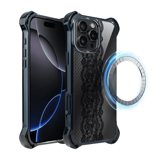 shumee Ovitek za iPhone 16 Pro Max IBIZU DropGuard Ultra z MagSafe, polnočen, okrasna čipka
