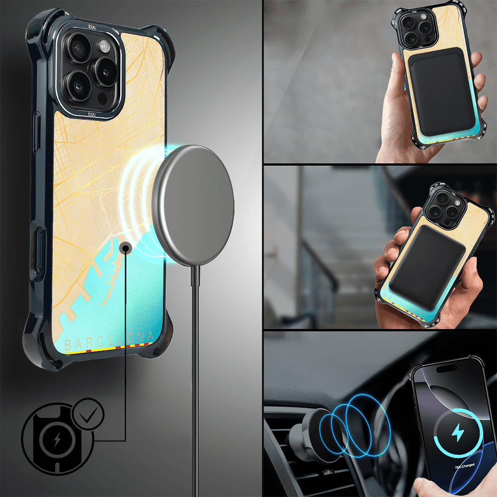 shumee Ovitek za iPhone 16 Pro Max IBIZU DropGuard Ultra z MagSafe, zemljevidi sveta, Barcelona