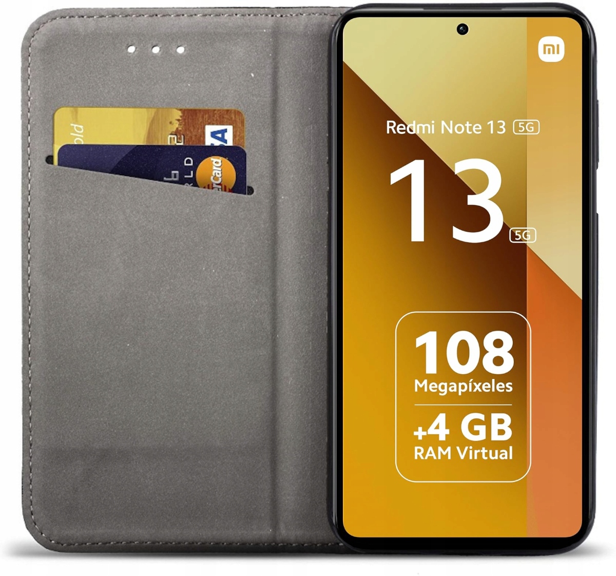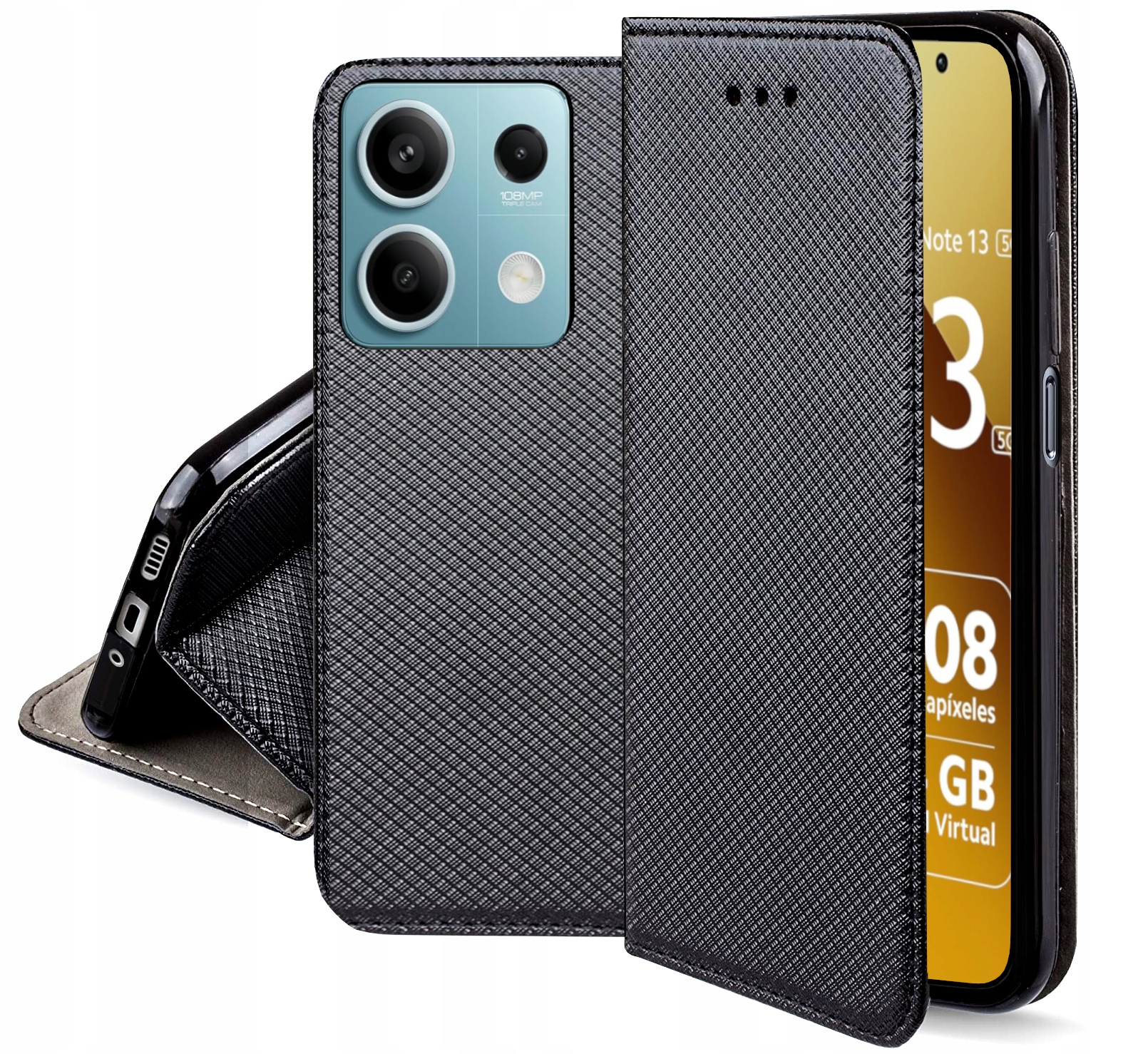 Pametna preklopna torbica z magnetom za Xiaomi Redmi Note 13 5G črna Celoten opis