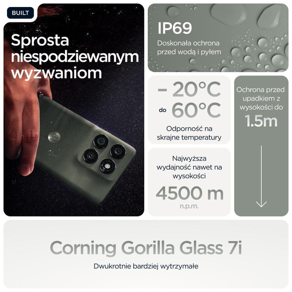 Motorola Edge 60 Pro izpolnjuje standarda odpornosti IP68 in IP69, kar pomeni, da je zaščiten pred prahom in vodo, vključno s potopitvijo in tlačnimi curki. Poleg tega je naprava prestala vojaško testiranje MIL-STD-810H, kar zagotavlja njeno vzdržljivost v težkih pogojih.