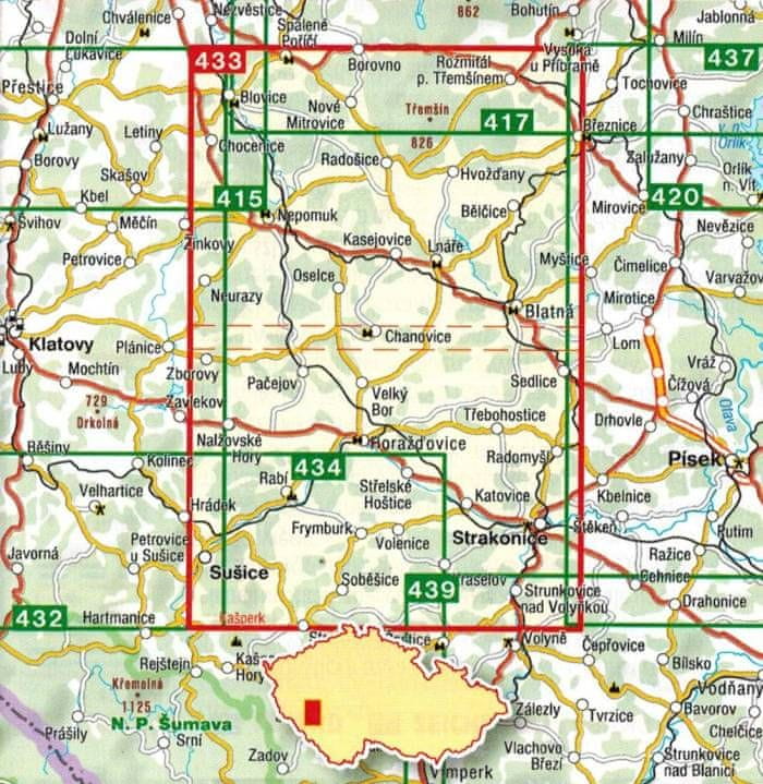 Pootavi – Sušičko, Strakoničko. Turistična karta 433. Shocart Celoten opis