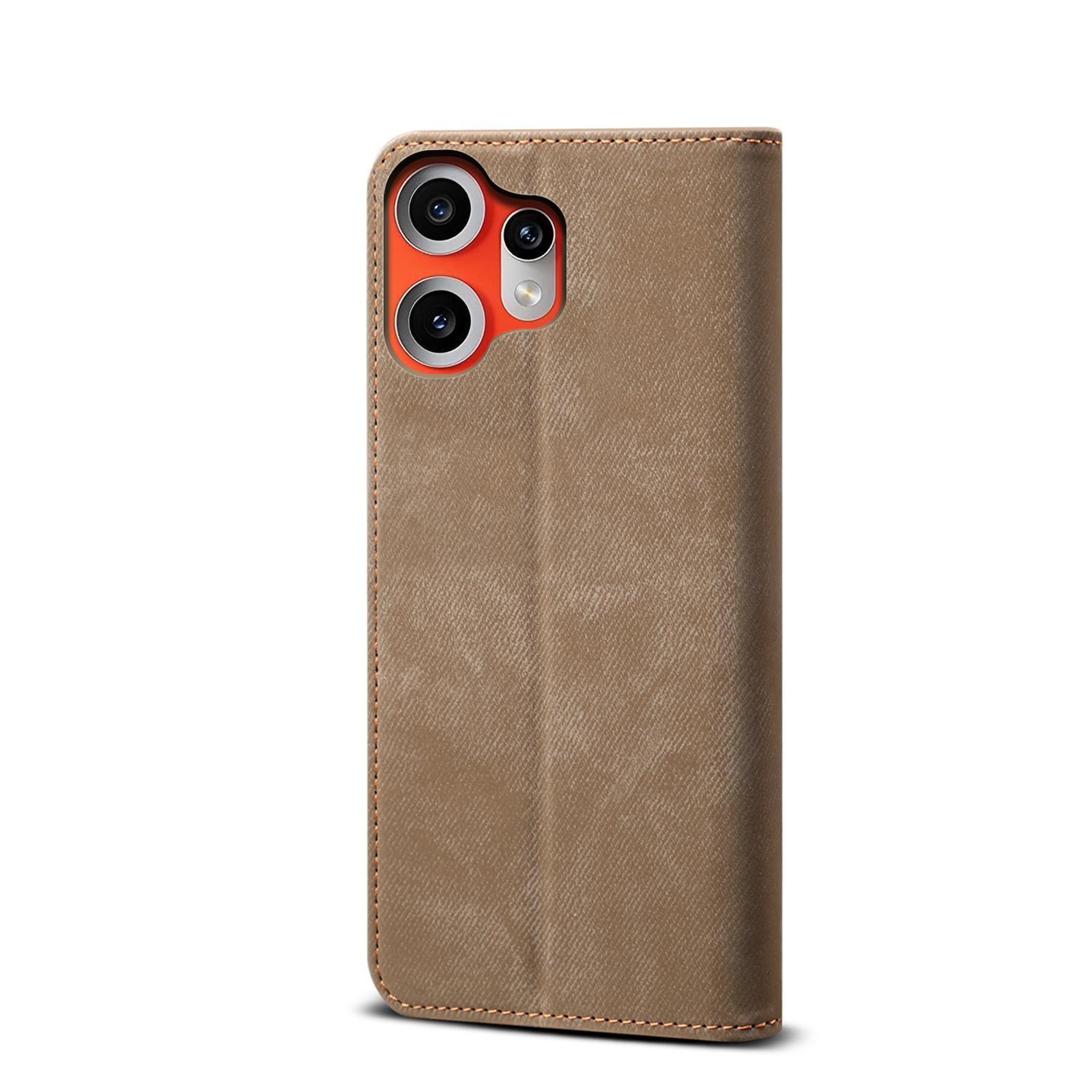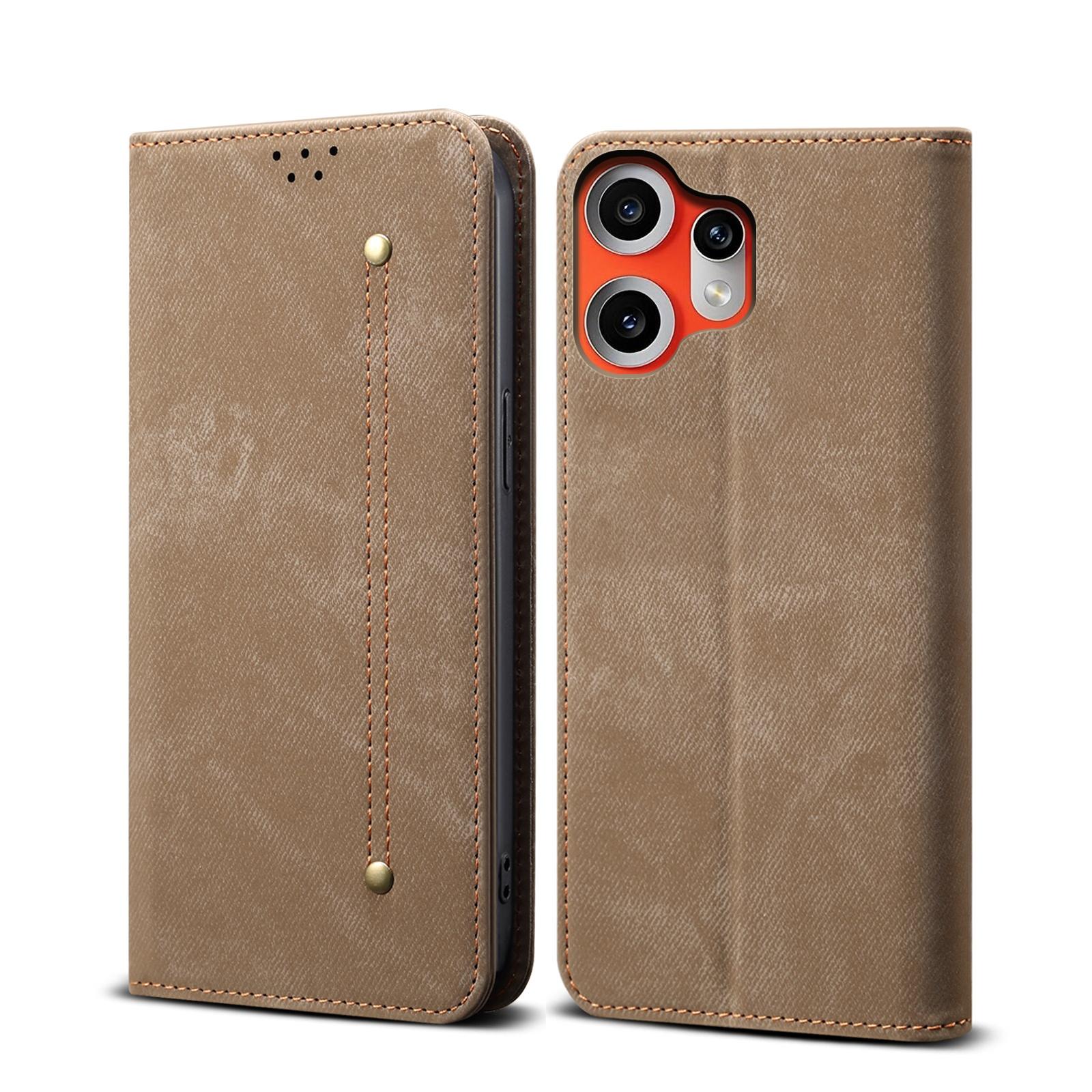 shumee Preklopna usnjena torbica Denim Texture za CMF Phone 2 Pro kaki