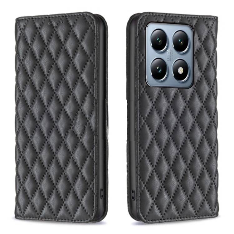 shumee Usnjena karirasta torbica denarnica za Xiaomi 14T Pro črna
