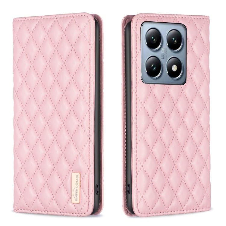 shumee Usnjena karirasta torbica denarnica za Xiaomi 14T roza