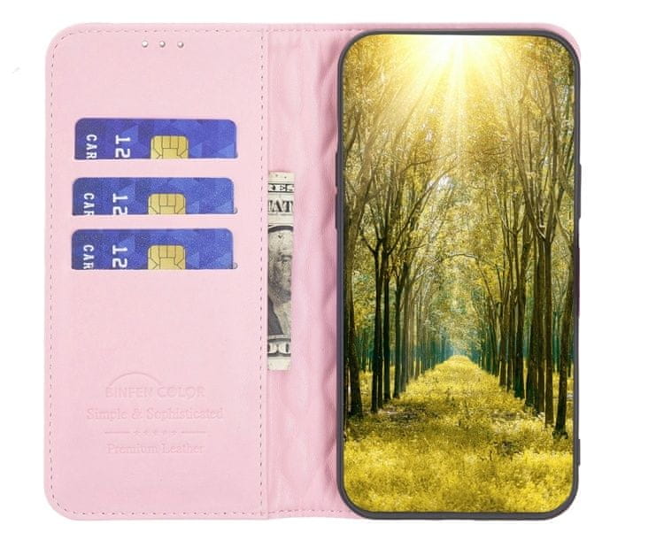 Usnjena karirasta torbica denarnica za Xiaomi 14T roza Celoten opis