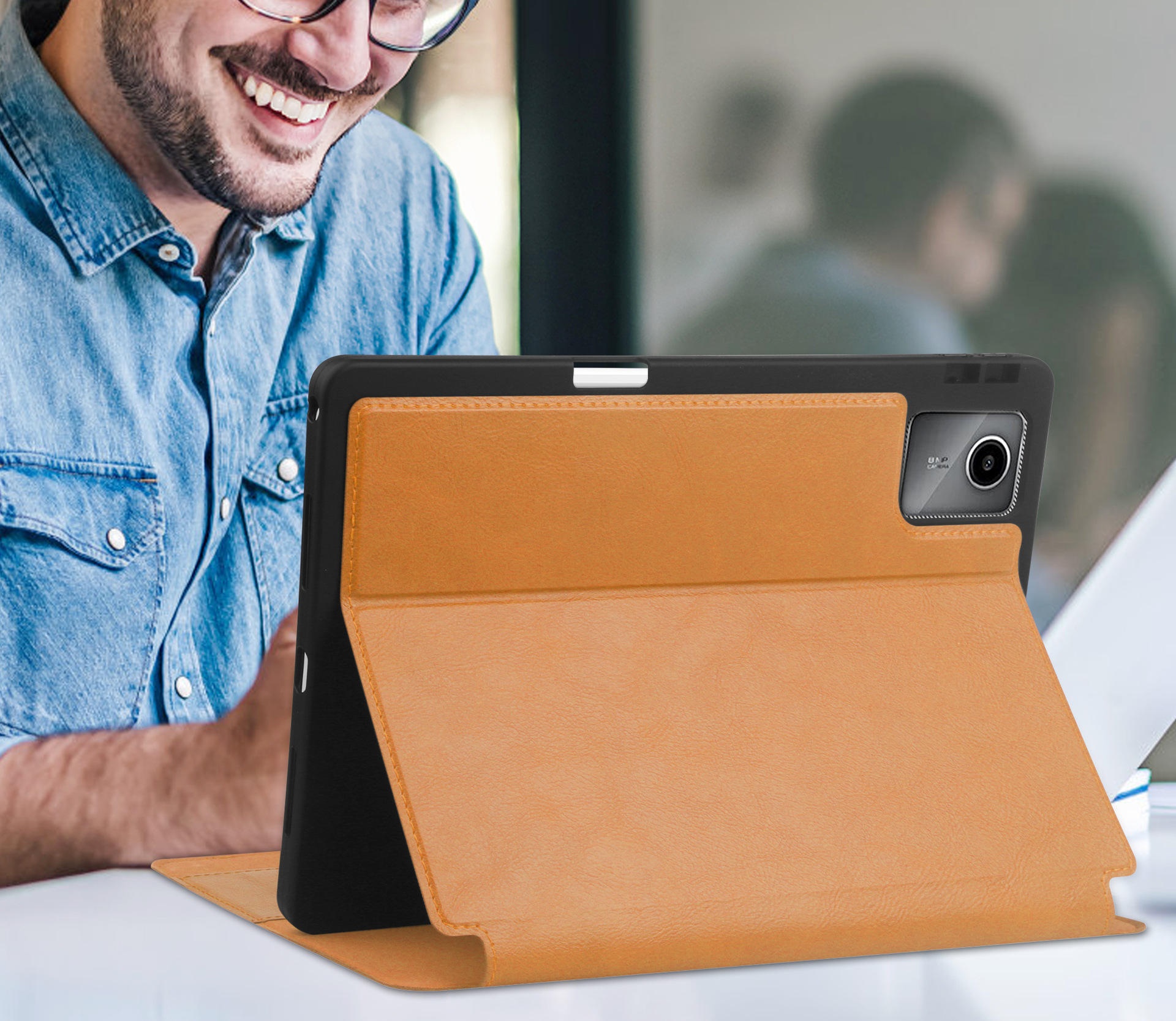 Izjemno funkcionalen zahvaljujoč zložljivi loputi, ki omogoča namestitev naprave pod različnimi koti. To omogoča udobno tipkanje in ogled večpredstavnosti v položaju, ki je primeren za vsakogar.