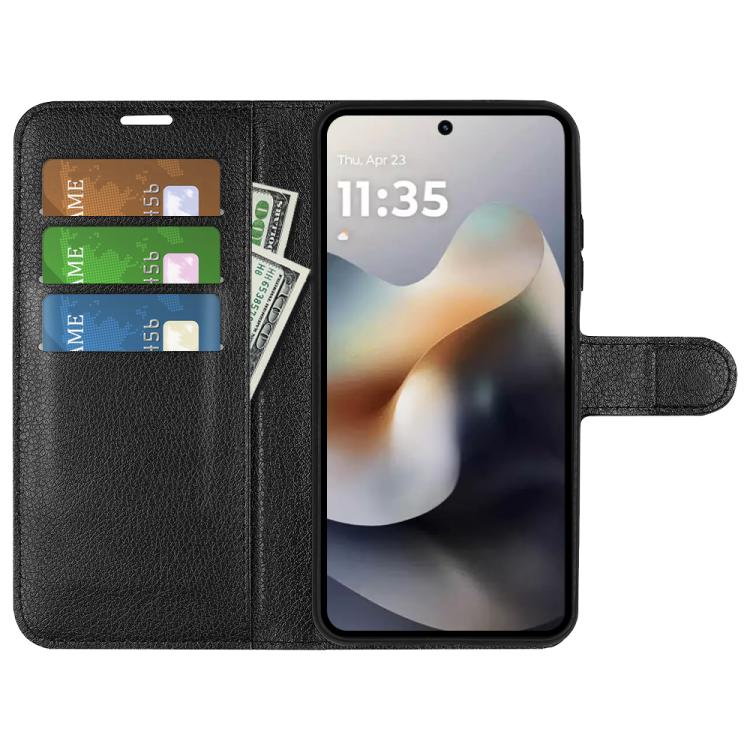 Usnjena torbica denarnica za Motorola Moto G56 5G / G66Y / G66J črna Celoten opis
