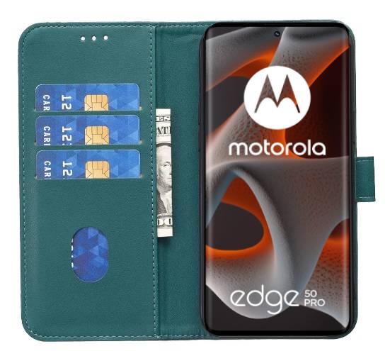 Usnjena torbica denarnica za Motorola Edge 50 Pro zelena Celoten opis