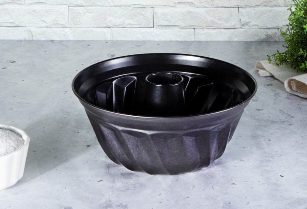 Forma za peko iz kolekcije Carbon PRO Line. Karbonsko jeklo lahko vzdrži temperaturo pečice do 240 °C. Kalup z nelepljivo površino se ne zažge, pekač pa je zelo enostavno odstraniti.