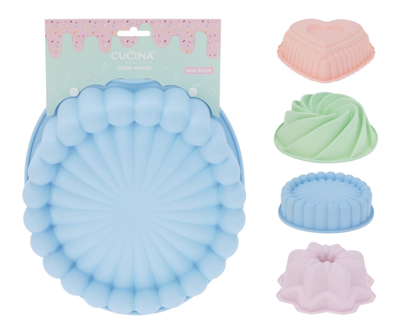 Model za peko mešanica oblik KULA, SRCE, CVETJE, SPIRALA, silikon.Dimenzije: – krog premera 25 cm – srce 25 cm – cvet 24 cm – spirala 24,5 cm višina: 10 cm material: silikon mešanica pastelnih oblik … Celoten opis