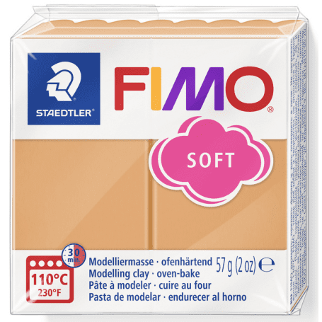 FIMO SOFT je vsestranska modelirna masa, ki je preprosta za uporabo in se lahko utrdi v domači kuhinjski pečici pri temperaturi 110°C. Čas utrjevanja je približno 30 minut. Z mešanjem osnovnih barv lahko dosežete poljuben odtenek, neutrjen FIMO lahko znova in znova pregnetete in preoblikujete. Dokončan izdelek ni prepusten za vodo, lahko ga umijete.