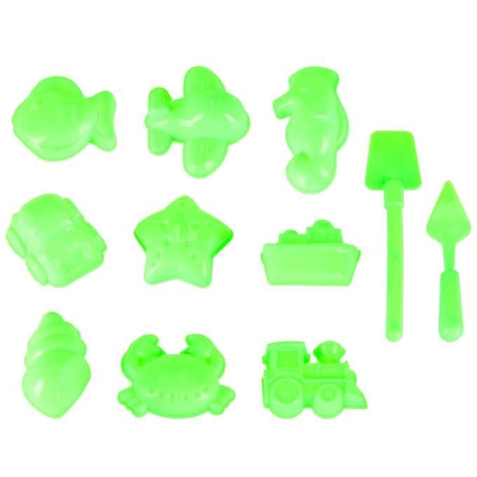 V kompletu je 16 plastičnih kalupov, ki vam omogočajo ustvarjanje različnih oblik in vzorcev iz peska. Kalupi so enostavni za uporabo in vašim kreacijam dodajo elemente betonske strukture.