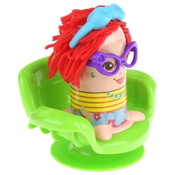 Pustite domišljiji prosto pot in pripravite modne pričeske, ki bodo združile trenutne modne trende z vašo domišljijo. Komplet združuje učenje z ustvarjalno zabavo, razvija otrokove interese in se privaja na prvi obisk frizerja. Samo postavite figuro (napolnjeno z igralnim testom) na stol, jo spustite na stojalo in opazujte, kako igralno testo (imitacija las) raste na strankinem obrazu. Zahvaljujoč dodatnim pripomočkom (škarje, glavnik, nož, okrasni kalupi) si lahko uredite, postrižete ali okrasite svojo pričesko po svojih zamislih.