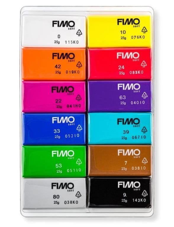 FIMO Soft set Basic vsebuje 12× maso , vsaka po 25g.