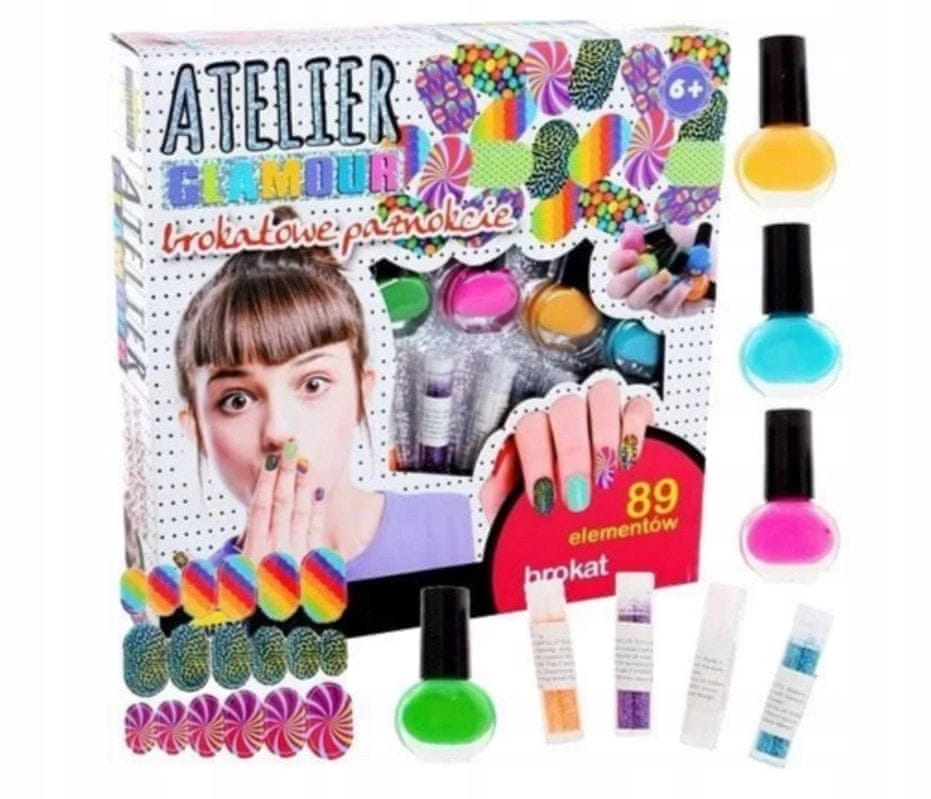 Komplet za oblikovanje nohtov Atelier Glamour Glitter Nails je odlična izbira za vse majhne umetnice, ki rade eksperimentirajo z modo in ustvarjajo svoje edinstvene stile nohtov. Zahvaljujoč obsežnemu kompletu 89 kosov lahko deklice izrazijo svojo ustvarjalnost in si pričarajo edinstvene dizajne, polne barv in domišljije.