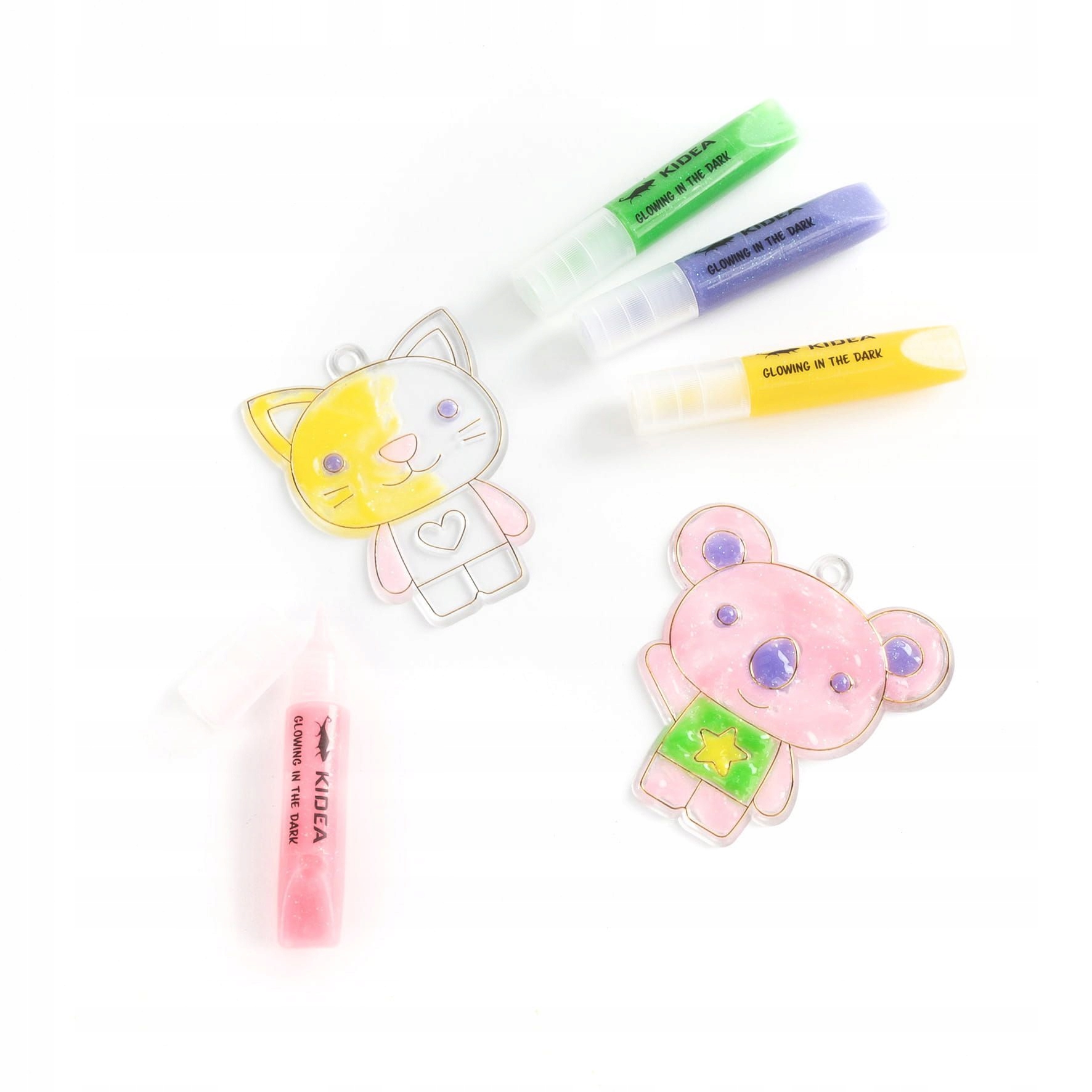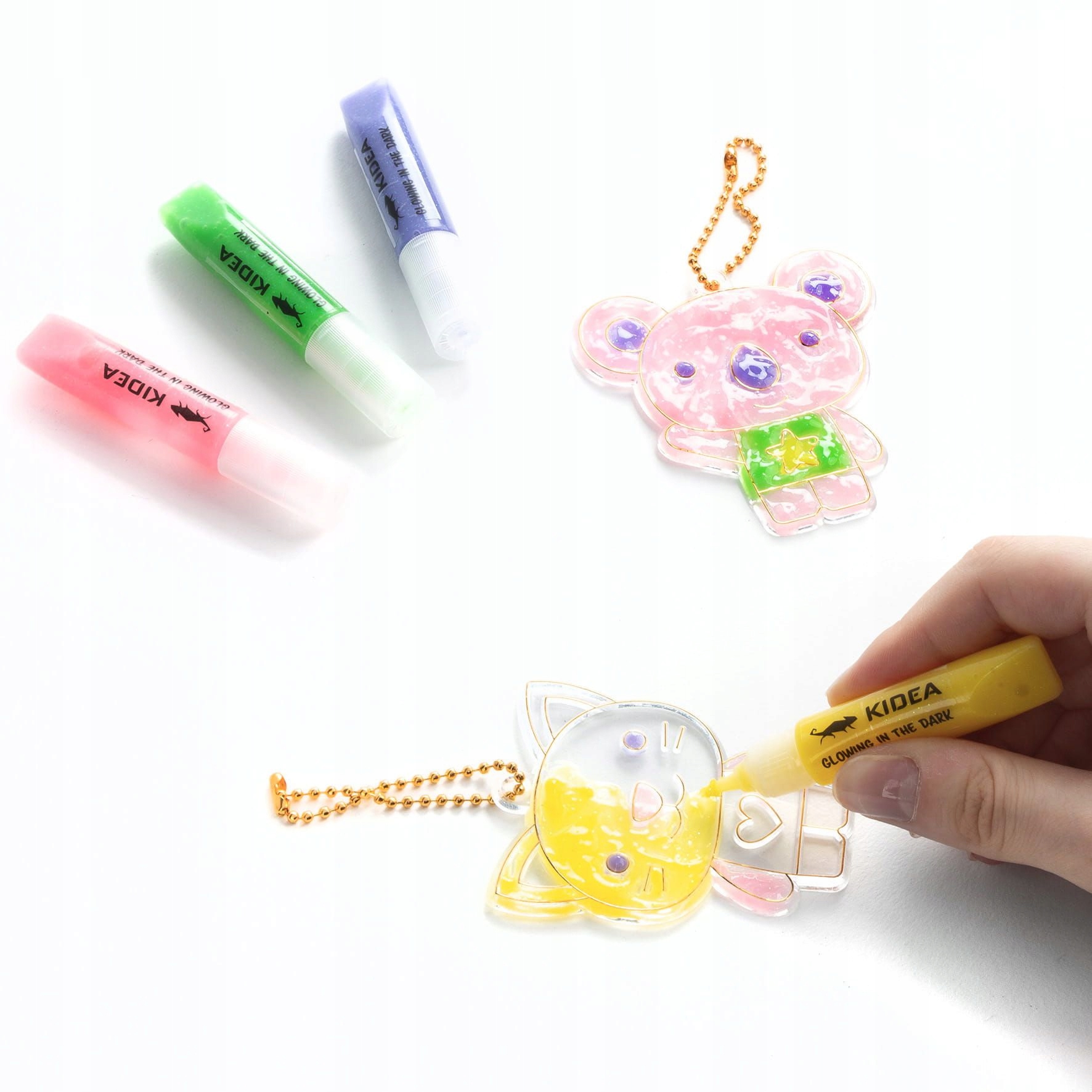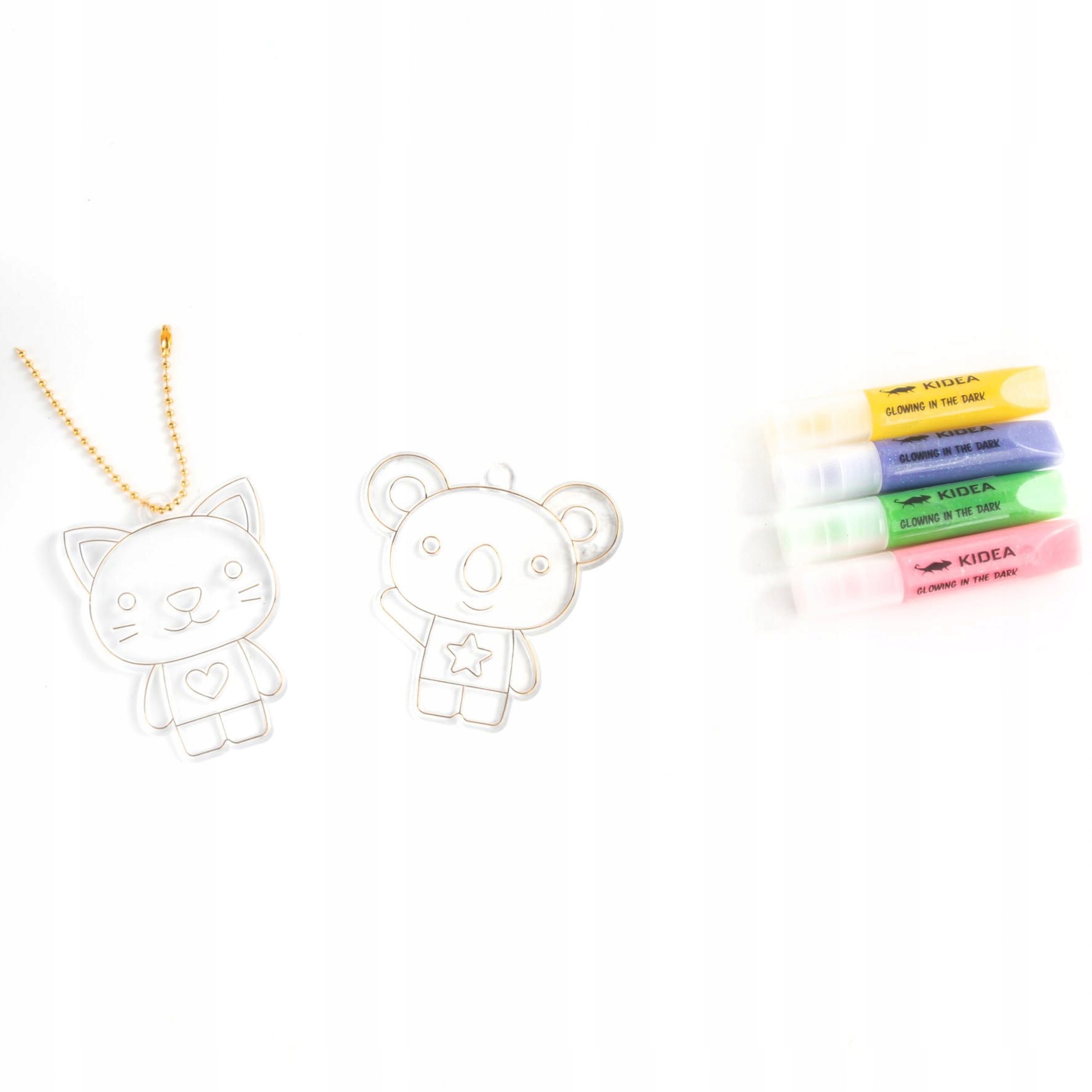 KOMPLET OBESKOV Z MEDVEDKOM, KI SE SVETIJO V TEMI, ŠABLONE Z GELI IN VERIŽICAMI KIDEA