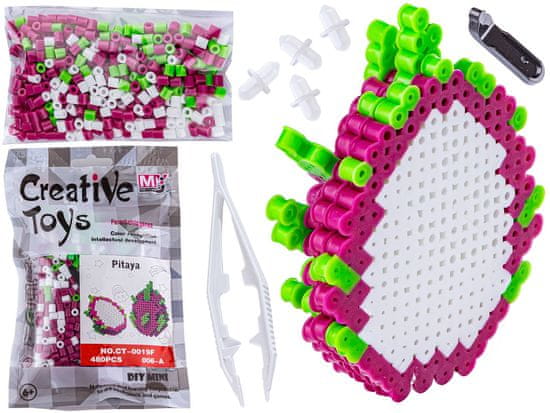 Likalne perle 3D različica, šablona PITHYHAM, sadje DRAGON FRUIT Fruit, torbica, likalna torba Barvite likalne perle so odlična ideja za ustvarjalno zabavo – učinkovito zasedejo veliko dolgih ur in sprostijo absolutni vulkan ustvarjalnih idej! Komplet omogoča aranžiranje sočnega zmajevega sadja. Iznajdljiv otrok – ponosen starš. To je igrača za samogradnjo. Komplet je sestavljen iz številnih pisanih plastičnih kroglic in vam omogoča sestavljanje zmajevega sadeža. Ta igrača bo zagotovo spodbudila domišljijo in pripomogla k razvoju ročnih spretnosti. Odličen komplet bo vsakemu otroku prinesel veliko zabave. Ta komplet razvija: Motorične sposobnosti – ko otroci zgrabijo perlo s prsti ali pinceto in jo položijo na blazinico, izboljšajo svojo spretnost rok in poleg tega ponavljajo to dejanje. velikokrat, Zbranost – proces ustvarjanja zahteva osredotočeno pozornost, Zaznavanje – otroci iščejo ustrezne barve, potrebne za določen aranžma, Vztrajnost in potrpežljivost – za učinek se je treba potruditi, včasih ti perlica uide izpod prsta, včasih prevrne se ipd. Izvirne umetnine S stisnjenimi perlicami lahko okrasite prostor ali pa iz njih naredite obesek za ključe ali obesek. Navodilo: Desko za razporejanje perlic položite na navodila, Perlice razporedite po vzorcu iz šablone, Položite peki papir in zlikajte, Pri likanju pazite, da se perlice ne stopijo popolnoma – pomembno je, da se povežejo, ampak da je luknje, ki ostanejo za namestitev konektorjev, Nadaljujte, dokler ne dobite vseh delnih elementov. S posebnim prijemalom za bele konektorje namestite konektorje na ustrezna mesta (to je navedeno v podrobnih navodilih sestavljanje) Povežite vse elemente s konektorji in stisnite, uživajte v sestavljeni igrači :) Opomba: Pri stiskanju perlic je potrebna pomoč odrasle osebe. cm, Natančna navodila za urejanje kroja, Likalni papir, Pinceta, Črno držalo za odlaganje konektorjev, Vrečka z belo konektorji, originalna embalaža – vrečka Specifikacija: Izdelek je primeren za: otroke nad 6 let Premer perle: 5 mm Dimenzije embalaže: pribl. 480