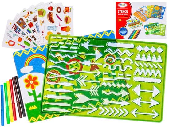 Ustvarjalni set za risanje vzorcev, vzorcev, šablon + markerjev, spirografa Ustvarite fascinantne vzorce in risbe s klasičnim orodjem, ki so ga uporabljale prejšnje generacije. Sprostite svojo ustvarjalnost s šablonami za risanje. Kreativna in pametna izbira šablon za risanje je popolno darilo za vsakega otroka. Vsi vemo, da so otroci željni kreativne igre in naš komplet je igrača, ki uči in razvija: umetniške sposobnosti in čut za estetiko, domišljijo in kreativnost, ročne spretnosti in senzorno-motorično koordinacijo, logično razmišljanje • Šablone so plastične plošče z izrezi različnih oblik. Šablono samo položite na papir in narišite izbrano obliko. Poleg tega je v kompletu še 8 kart s „polnjenimi“ elementi na različne teme. So barvite, potiskane na karton. Lahko jih prerisamo ali preprosto prilepimo. S temi zanimivimi risbami lahko okrasimo pisma, zvezke, kartončke, zaznamke itd. Komplet vsebuje: 6 plastičnih šablon za prerisovanje, 8 kartončkov s polnjenimi elementi, flomastre v 6 barvah, več listov praznih kartončkov A4, slikovna navodila, original. Pakiranje: Starost: 3+ Markeri v naslednjih barvah: modra, rdeča, zelena, rumena, rjava in črna šablona: 16 × 11,5 cm Dimenzije embalaže: 28,5 × 22 × 4,5 cm