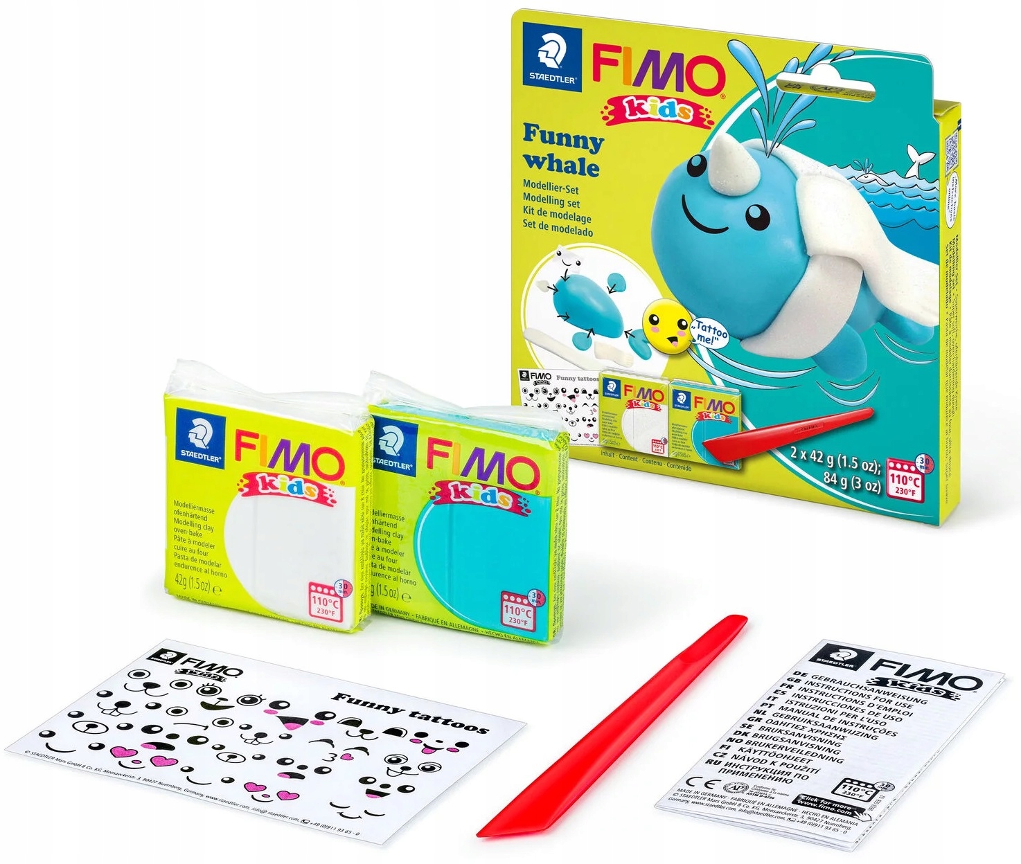 • Komplet vsebuje: 2 kocki Fimo Kids po 42 g, lopatico, list s tetovažami in navodila po korakih s slikami