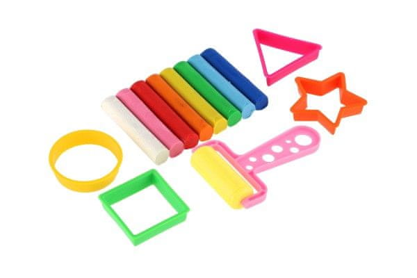 Zabaven ustvarjalni komplet za ustvarjanje z modelirno glino. Modelina ima čudovite barve, v paketu je 8 kosov. V kompletu so tudi 4 kosi rezalnikov in valjček. Zabava z modelirno maso se lahko začne! Velikost paketa: 23 × 28 × 2 cm Primerno za otroke od 3. leta dalje