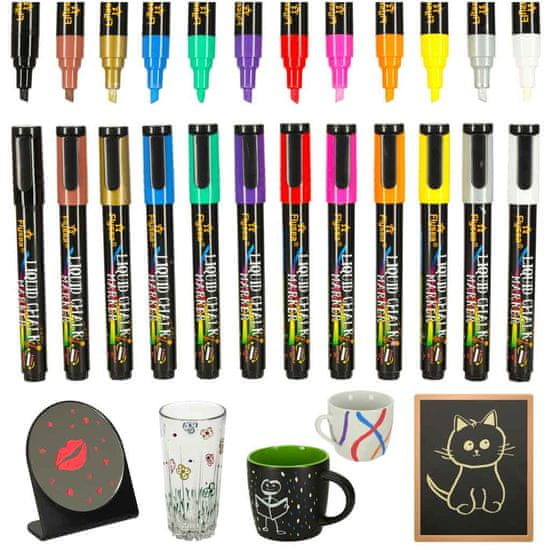 S tem kompletom lahko ustvarite napise in grafiko na kateri koli neporozni površini. Odlični tako za domačo kot komercialno uporabo – kredni markerji za bare, restavracije, izložbe trgovin in informacijske table so funkcionalna rešitev, ki bo ustrezala vsakemu prostoru.