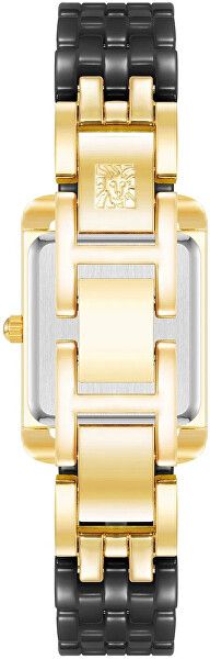 Ženska ura Anne Klein AK/5022GPBK je elegantna kombinacija črne in zlate barve, ki daje prefinjen videz, primeren za različne priložnosti. Pravokotna številčnica je zaščitena z mineralnim steklom. Ohišje ure je pozlačeno, kar poudarja njen luksuzni dizajn. Črna keramična zapestnica ni le elegantna, ampak tudi udobna za nošenje. Uro poganja zanesljiv kvarčni mehanizem, ki zagotavlja natančno merjenje časa.