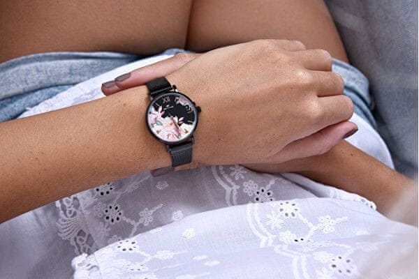So vam všeč dodatki, ki so polni barv? Potem je ura iz delavnice priljubljene znamke Bentime prava za vas. Njihova številčnica je polna cvetočih rož, ki poudarjajo naravne čare vsake dame in naredijo ta model zares nepogrešljiv kos. Ohišju s črno PVD prevleko sledi trendi Milanese pull, priljubljen zaradi svoje popolne prilagodljivosti vsakemu obsegu zapestja. Okrasite se z uro, ki vas bo naredila očarljivega.