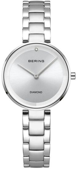 Za ženske, ki iščejo popolno kombinacijo minimalistične elegance in brezčasnega stila, je tu ura Bering. Njena nežna srebrna številčnica z natančno izrezanim sončnim žarkom je harmonično vstavljena v tanko jekleno ohišje. Uri daje ekskluzivnost in izvirnost pristen diamant, nameščen na položaju 12. ure. Nato je udobno pritrjena na zapestje z visokokakovostnim jeklenim paščkom. Ure Bering ne boste želele sneti z roke.
