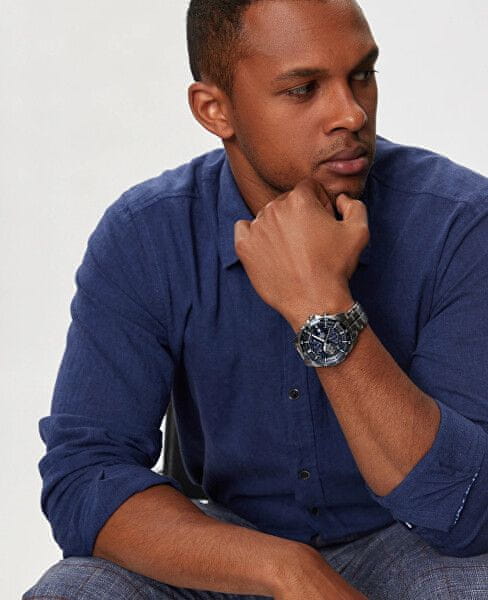 Ne glede na to, ali ste izbrali formalno obleko ali priložnostno majico, bodo Casio ure iz priljubljene kolekcije Edifice z navdihom F1 vedno prilagodile vaš videz. Robusten temno modri klic privlači tri kronografe s funkcijo štoparice in 24-urno uro, vključno s potrebnim žigom datuma. Celoten opis