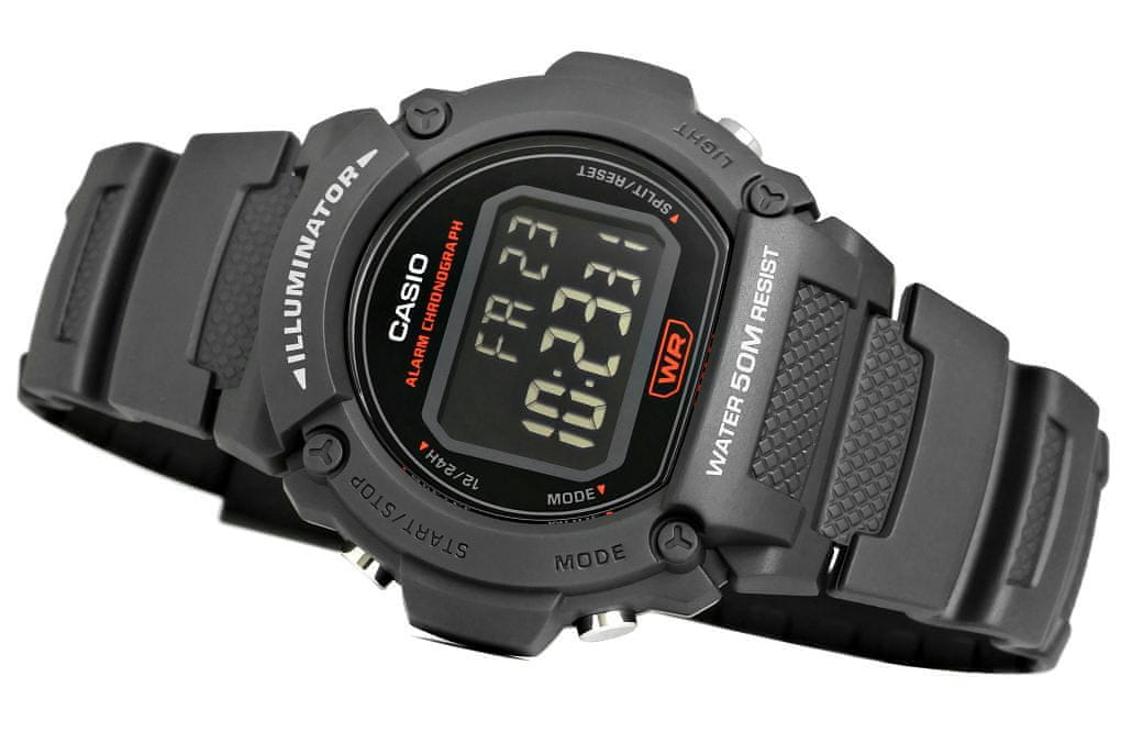 • Številčnica: Quartz. Dnevni alarm – dnevni alarm vas z zvočnim signalom opomni na dogodke, ki se ponavljajo vsak dan; Samodejni koledar – po nastavitvi ura vedno prikazuje pravilen datum (zapomni si krajše mesece); Štoparica – 1/100 sek. – 1 h – natančnost merjenja do 1/100 sekunde, merilno območje do 1 h; 12/24-urni format – nastavite lahko prikaz časa v 12– ali 24-urnem formatu. V 12-urnem načinu je na zaslonu v drugi polovici dneva, to je od 12. do 23.59, poleg časa prikazana črka p.