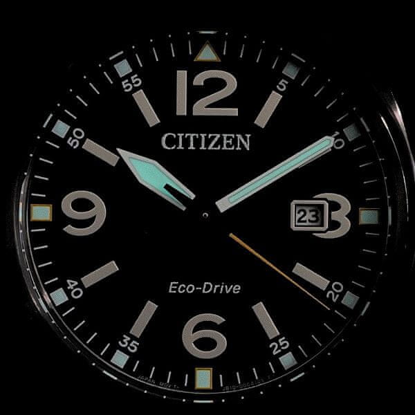 Citizen Eco-Drive AW1571–76X je moška ura z robustno zasnovo, idealna za aktiven življenjski slog. Zelena številčnica z izrazitimi indeksi in kazalci je zelo enostavna za branje. Ohišje in ročaj sta izdelana iz nerjavečega jekla, kar zagotavlja vzdržljivost in dolgo življenjsko dobo. Vodoodpornost 10 ATM vam omogoča uporabo ure tudi med plavanjem.