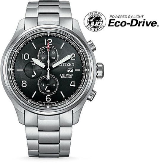 . Glavne prednosti te ure so sončna energija ter ohišje in mehanizem iz titana. Klasična številčnica, prekrita s safirnim steklom, je izdelana do najmanjše podrobnosti. Trije kronografi imajo štoparice in 24-urni prikaz časa. Kazalci in kazala so prevlečeni z luminiscenčno plastjo. Samoumeven je tudi datumski žig. Takšna ura je primerna za vsako obleko in za vsako priložnost, zahvaljujoč vodoodpornosti 10 ATM lahko z njo celo plavate.ECO-DRIVE: dragulj med urnimi mehanizmi