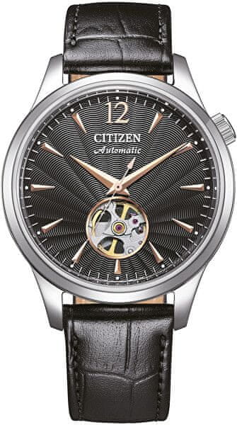 Ne glede na to, ali nosite formalno obleko ali udobna oblačila za prosti čas, vas bo ura iz delavnice Citizen vedno spremenila v popolnega gospoda. Njihova vzorčasta številčnica navduši že na prvi pogled z odprtim srcem, zahvaljujoč kateremu imate možnost videti, kako mehanizem deluje. Celoten opis