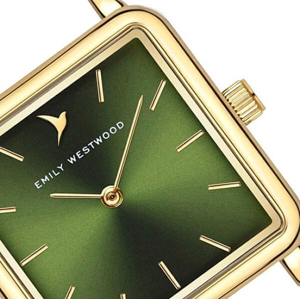 Dodajte to edinstveno uro Emily Westwood v svojo zbirko z drzno kvadratno številčnico v temno zeleni barvi . Ta nenavadna oblika ohišja in številčnice daje uri sodoben in drzen videz, ki izstopa iz tradicionalnih modelov. Zlati kovinski mehanizem elegantno dopolnjuje zeleno številčnico in ji doda pridih razkošja. Ta ura je odličen dodatek za ženske, ki se ne bojijo izstopati iz množice in izraziti svoj edinstven slog.