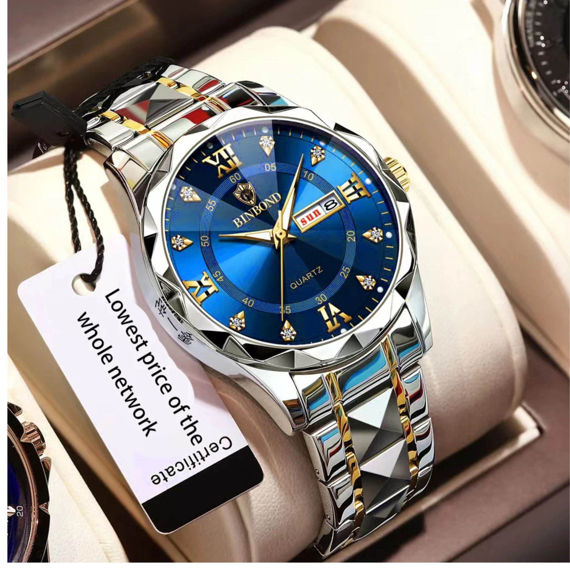 FRILLA® Razkošna moška ura s koledarjem, 40 mm, Miyota mehanizem, 3ATM | TIMEXA, zlato modra