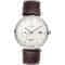 Moška zapestna ura Napajanje na baterije Stroj MIYOTA JP27 Premer ohišja 43,0 mm Ohišje v obliki kroga Jekleno ohišje Ohišje srebrne barve Usnjeni poteg Rjava barva izvleka Ročna številčnica Bela barva številčnice Številčnica z dvanajstimi indeksi Material stekla – mineralno steklo Vodoodporen med prhanjem in pranjem Datum