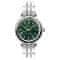 Ženska zapestna ura Napajanje na baterije Stroj SEIKO Y121 Premer ohišja 34,0 mm Ohišje v obliki kroga Jekleno ohišje Ohišje srebrne barve Jekleni poteg Srebrna barva vleka Ročna številčnica Zelena barva številčnice Številčnica z dvanajstimi indeksi Material stekla – mineralno steklo Vodoodporen med plavanjem