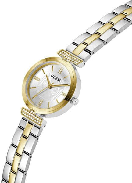 Ura GUESS Array GW0762L5 je eleganten in prefinjen dodatek za ženske, ki imajo raje subtilen in razkošen dizajn. Njihovo ohišje in mehanizem sta izdelana iz jekla v kombinaciji zlata in srebra, kar daje uri vsestranski in okusen videz.
