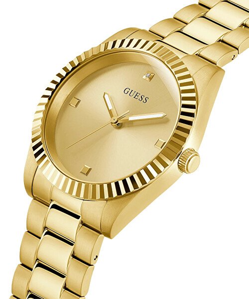 Ure iz modne delavnice Guess so kot nalašč za vse moške, ki imajo radi minimalizem. Številčnica bo pritegnila vaš pogled že na prvi pogled z vdelanim diamantom na sprednji strani, elegantnimi kazalci in logotipom znamke. Ohišje skupaj s potegom je izdelano iz nerjavečega jekla z zlatim zaključkom. Celoten opis
