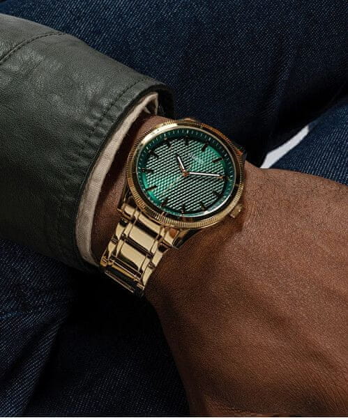 Ure iz delavnice Guess so pravi dodatek za vsakega elegantnega gospoda. Ura pritegne pozornost s popolno pozlato. Ohišje in sprožilec sta izdelana iz visokokakovostnega nerjavečega jekla . Tak modni dodatek vam bo dal pridih luksuza.