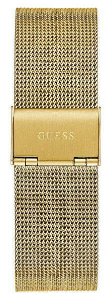 Pustite se očarati unikatnim uram iz modne delavnice Guess. Ura pritegne pozornost s številčnico, okrašeno z veličastnim mehanizmom premikanja. Jekleno ohišje je povezano s popolnoma prilagodljivim milanskim mehanizmom v luksuznem zlatem zaključku. Celoten opis