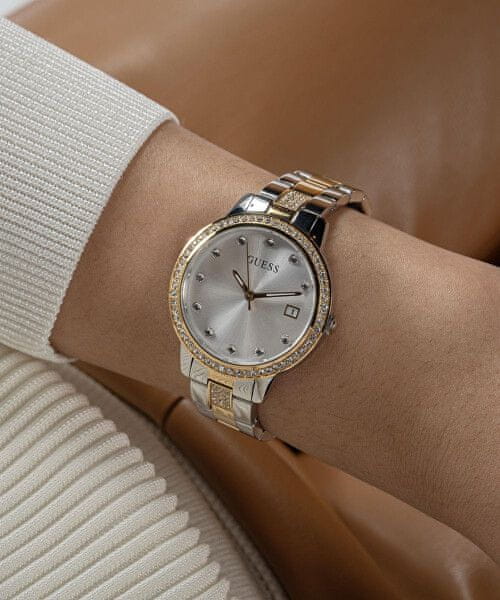 Iščete najboljši način, da poudarite svoje naravne čare? Ure iz delavnice priljubljene modne znamke Guess so najboljša izbira. Zaradi dvobarvnega dizajna boste dobesedno zasijali, zagotovo pa vam bodo najbolj všeč bleščeči kamni na ohišju, številčnici in mehanizmu. Na tretjem mestu boste cenili uporaben datumski žig . Takoj, ko na zapestju pritrdite členek iz nerjavečega jekla, boste tudi vi padli pod urok Guessa.