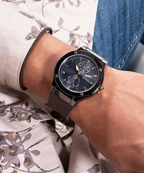 Ure iz delavnice priljubljene modne znamke Guess so kot nalašč za vse moške z okusom po elegantnih dodatkih. Njihova temno modra številčnica pritegne pozornost že na prvi pogled z dvema kronografoma s funkcijo datuma in dneva v tednu. Ura je v celoti izdelana iz nerjavečega jekla. Privoščite si dodatek, ki vas bo vedno spremenil v sodobnega gospoda.