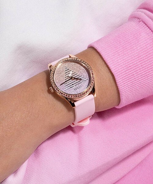Ure iz modne delavnice Guess so kot nalašč za vse dame, ki se rade okrasite z bleščečimi dodatki. Bleščeča številčnica v minimalističnem slogu je okrašena le s kazalci in nezamenljivim logotipom znamke. Ohišje je izdelano iz nerjavečega jekla z zlatim PVD zaključkom. Ura se na zapestje pritrdi z udobnim silikonskim paščkom. Stavite na dodatek, ki bo postal nepogrešljiv spremljevalec vaših vsakodnevnih avantur.